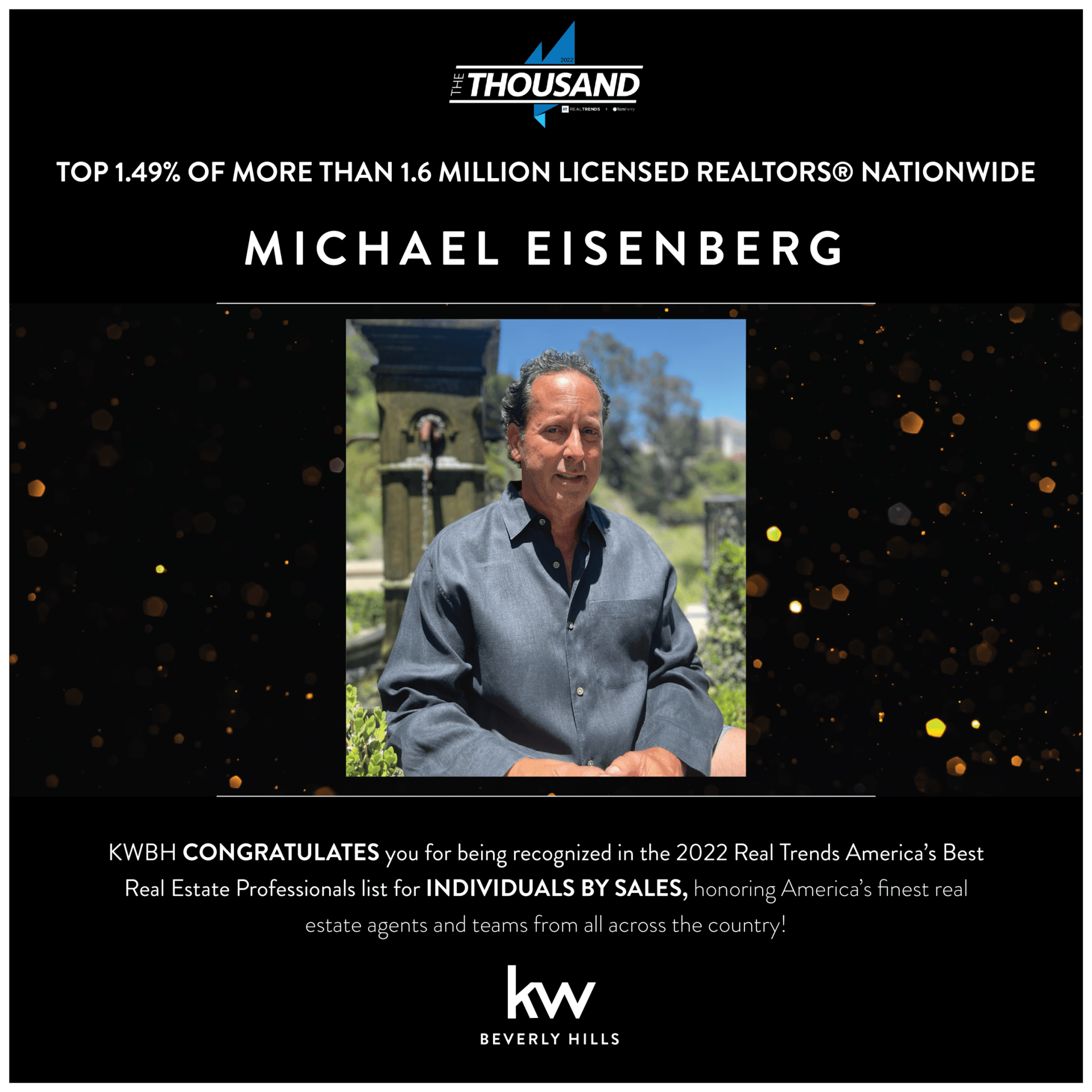 Michael Eisenberg has been buying and selling properties in the Greater Los Angeles areas for over 25 years. He has represented both well known Entertainment luminaries and Titan's of Industry with his laser focused attention to detail.
