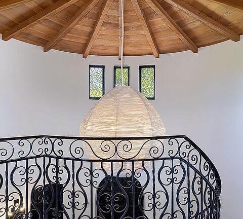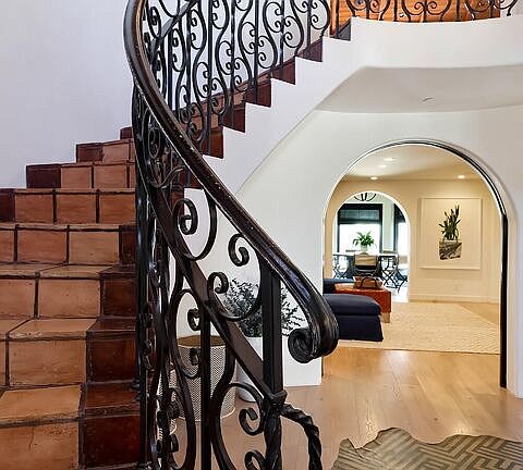" Villa Encanto" - The most private property in the Beverly Hills Flats which sits on a prime gated 18,000+ sq. foot corner lot. The home is surrounded by lush towering hedges which allow for the rare & secluded use of the large front grassy yard. This special property affords the maximum in irreplaceable privacy and security. A completely reinvented and published Spanish Hacienda with designer finishes, massive sandblasted beamed ceilings, thick plaster walls and wide plank oak floors transport you back in time to the true romance of Beverly Hills. Fabulous room sizes with French doors lead outside to an additional grassy rear yard with sparkling pool and outdoor bar with bbq. This creates a wonderful entertaining flow to the detached guest house that allows for true generational living. A gracious 6-bedroom main house (four bedroom suites upstairs and two bedrooms down) with a family office and bathroom. A detached 2 bedroom, 2 bath guest house with living room complete this "oh so special offering." The property is equipped with state of the art security and surveillance systems. Towering Date Palms that line the street create the perfect California backdrop. The total sq. footage is 8,046 comprised of a 6,333 sq. ft. main house, 1,340 sq. ft. guest house and 373 sq. ft. converted garage/studio. Shown By Appointment Only to Pre-Approved Clients.